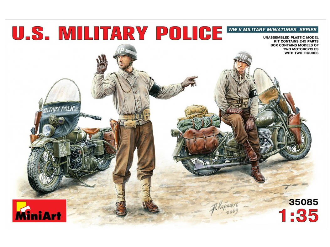 Набор пластиковых элементов для сборки фигур и мотоциклов американской военной полиции в масштабе 1:35.