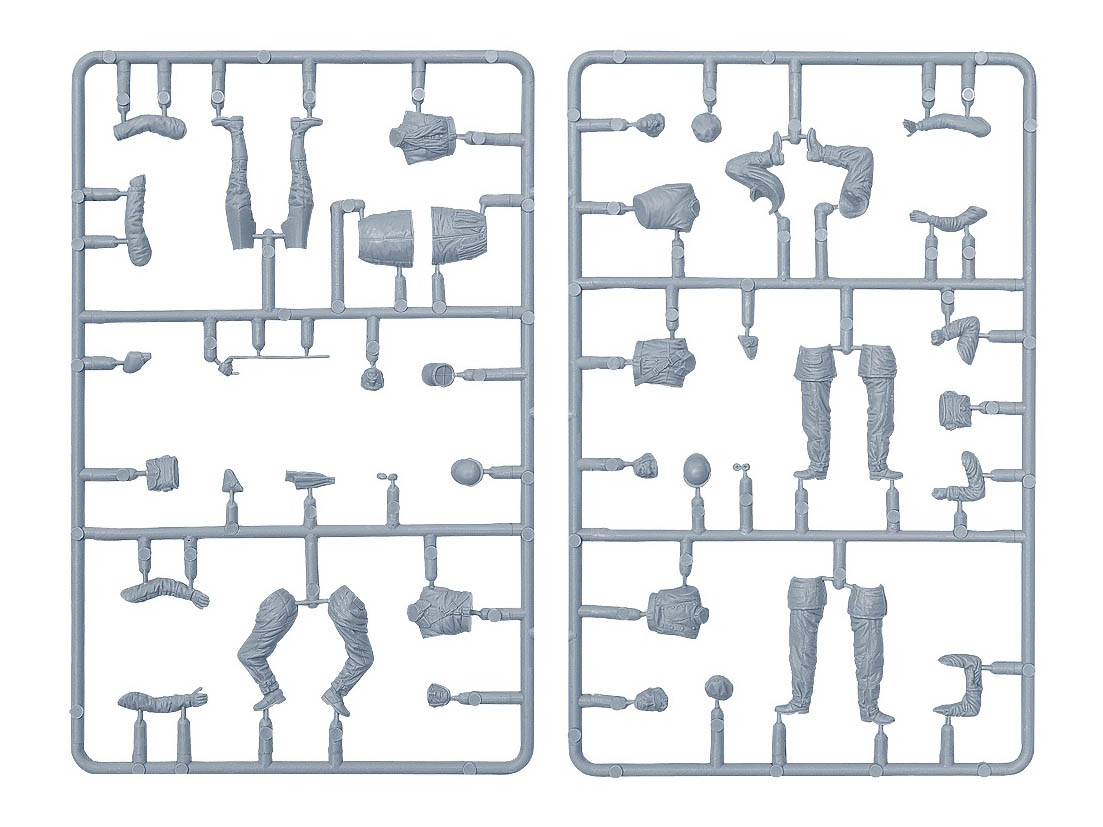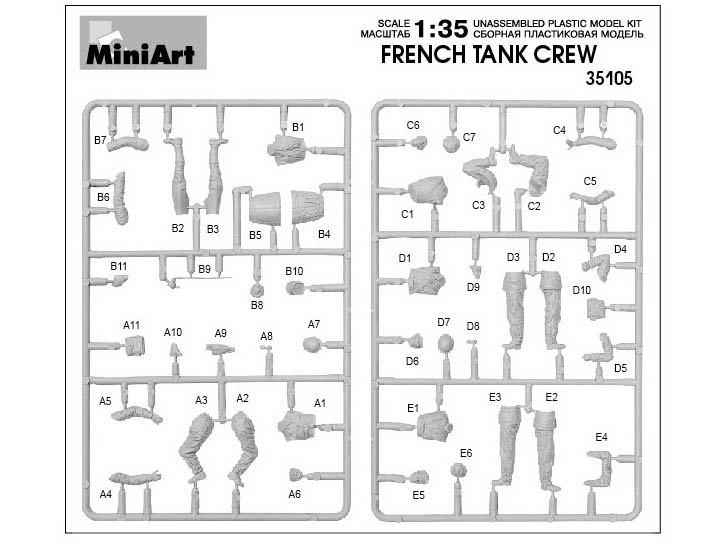 Набор пластиковых элементов для сборки фигур французского танкового экипажа в масштабе 1:35.