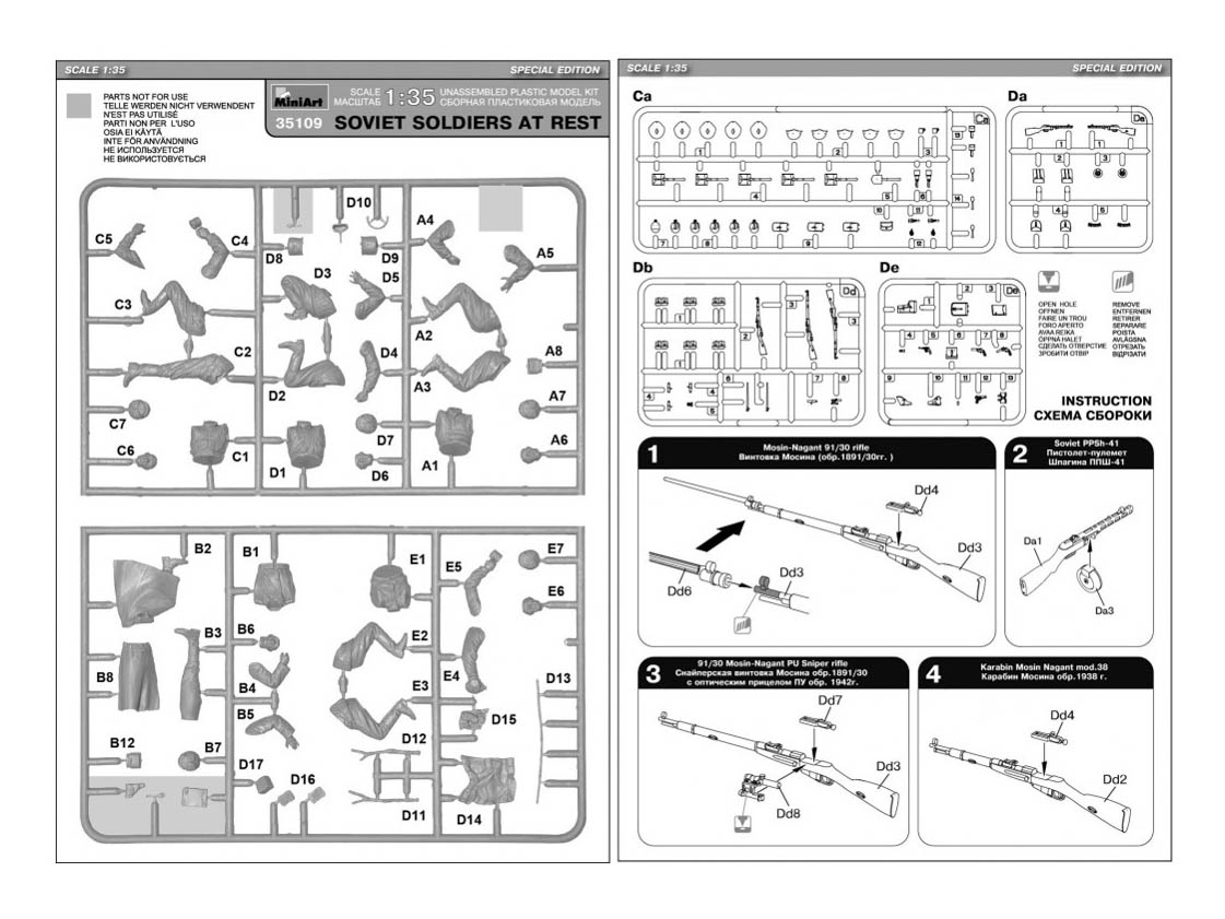 Набор пластиковых элементов для сборки фигур советской пехоты на отдыхе в масштабе 1:35.
