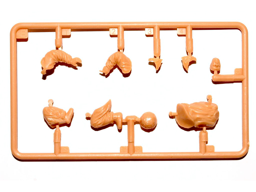 Набор пластиковых элементов для сборки фигур советской штурмовой пехоты в зимних маскировочных халатах в масштабе 1:35.