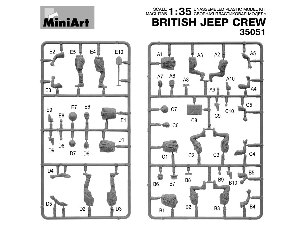 Набор пластиковых элементов для сборки фигур экипажа британского джипа в масштабе 1:35.