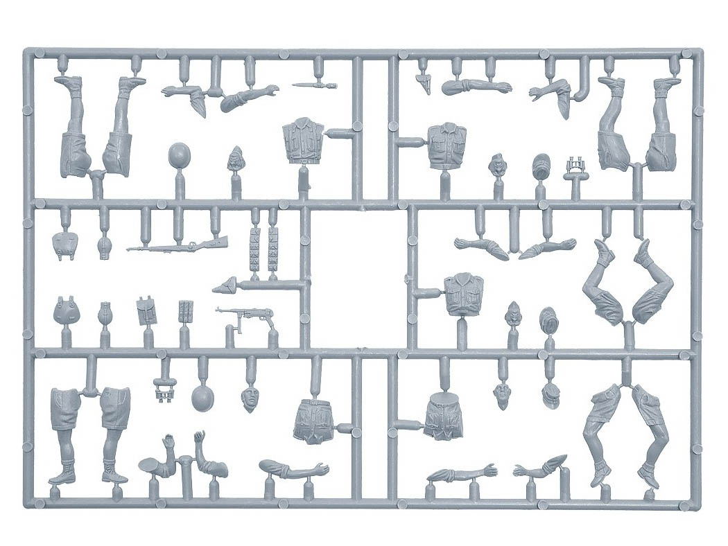 Набор пластиковых элементов для сборки фигур немецких десантников и танкистов (Италия 1943) в масштабе 1:35.