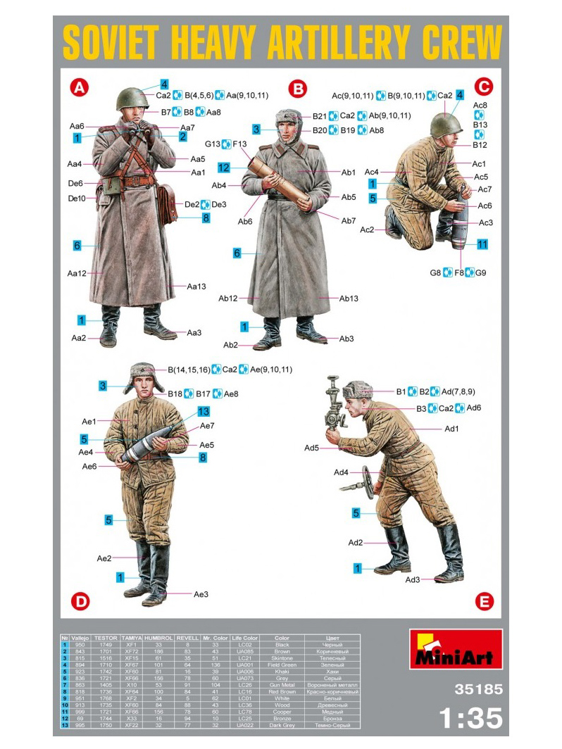 Набор пластиковых элементов для сборки фигур советских артиллеристов в масштабе 1:35.