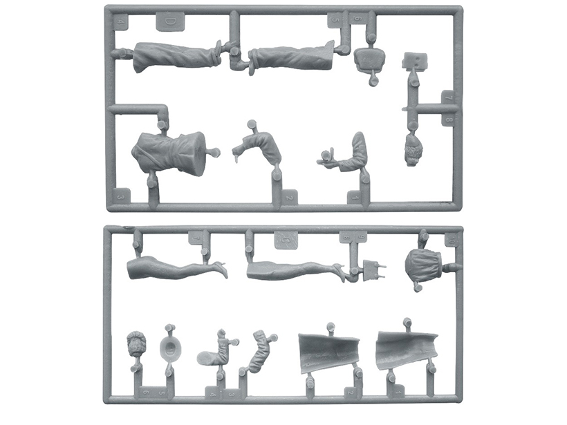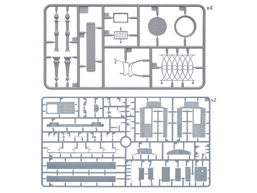 Набор пластиковых элементов для сборки европейского трамвая с экипажем и пассажирами в масштабе 1:35.