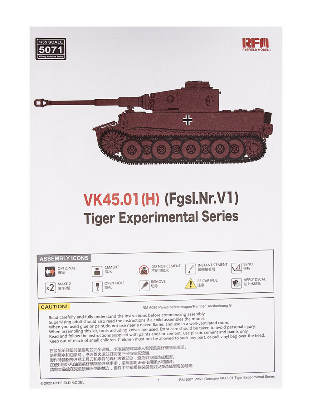 RM-5071 RFM Немецкий танк VK45.01(H) (Fgsl.Nr.V1), прототип Tiger I (1:35)