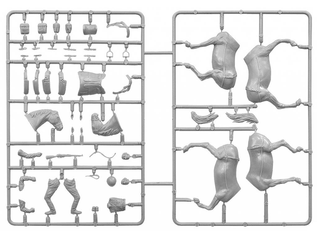 В комплекте фигуры лошадей, артиллерийского передка, шанцевого инструмента, пушки и 7 артиллеристов.