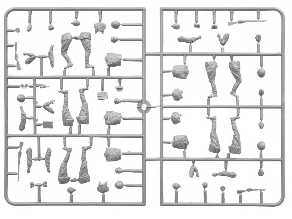 Набор пластиковых элементов для сборки модели советской дивизионной артиллерии с экипажем в масштабе 1:35.