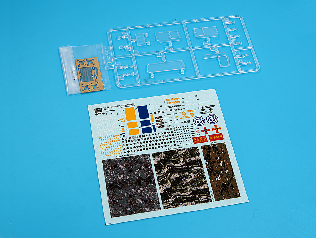 Декаль включает 6 типов маркировок корейской армии и камуфляжный рисунок для фигурок членов экипажа.