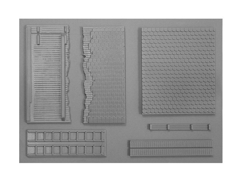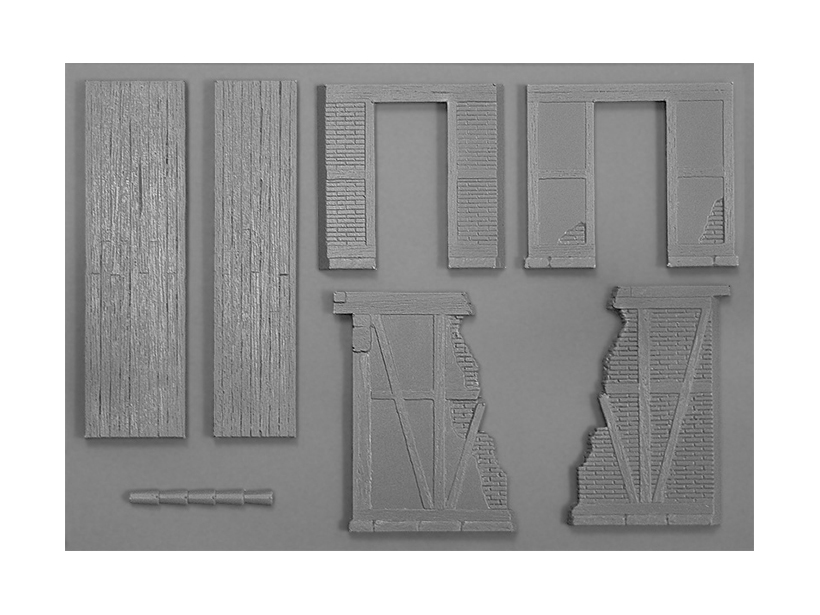 Набор пластиковых элементов для сборки диорамы сарая с деревянным забором в масштабе 1:35.