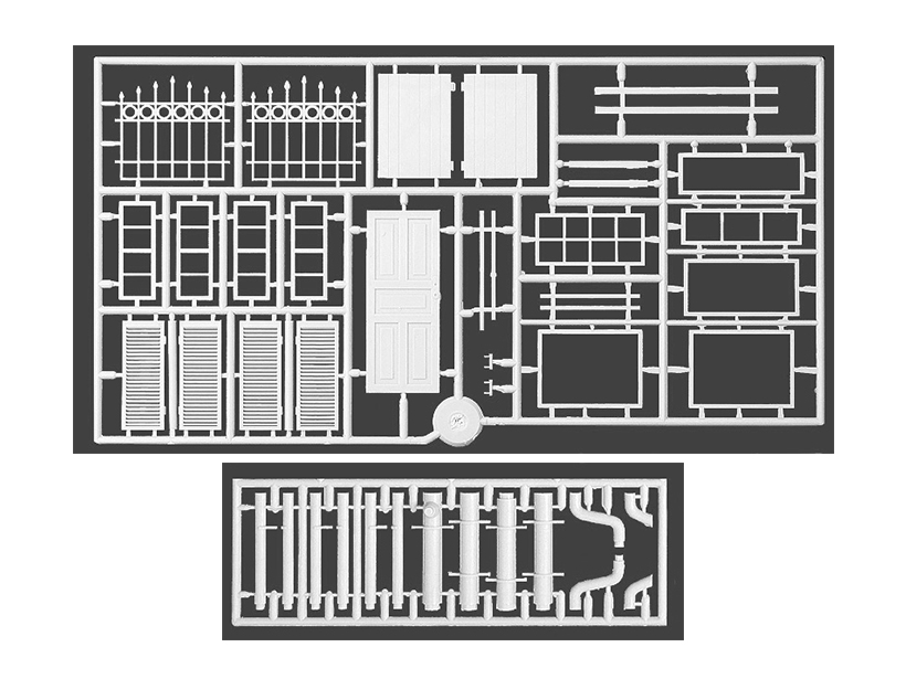 Набор пластиковых элементов для сборки деревенской диорамы в масштабе 1:35.