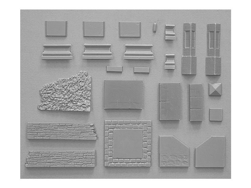 Набор пластиковых элементов для сборки деревенской диорамы с фонтаном в масштабе 1:35.