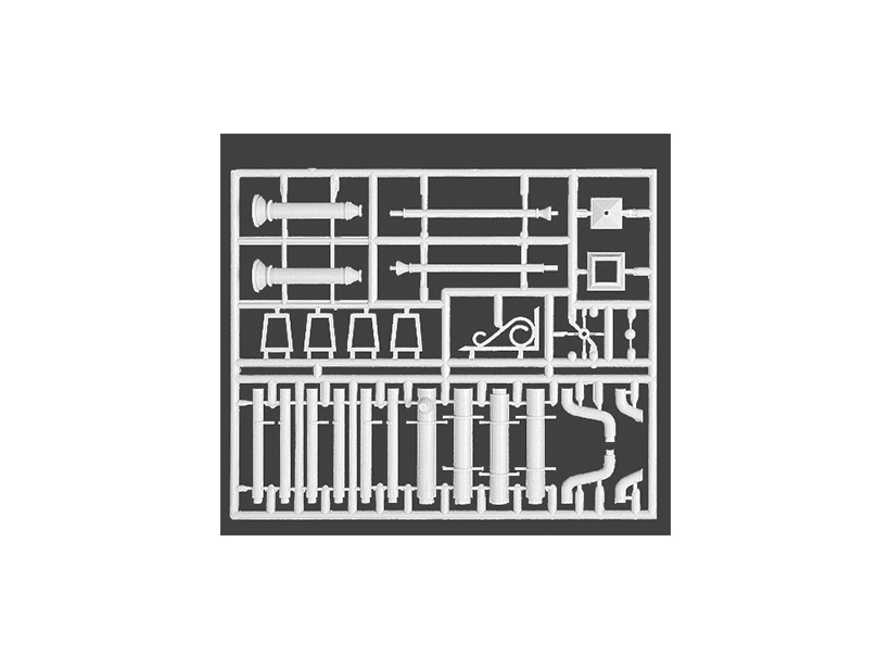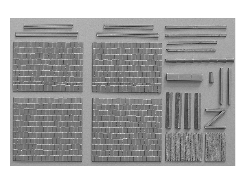 Набор пластиковых элементов для сборки диорамы деревенского дома с основанием в масштабе 1:35.