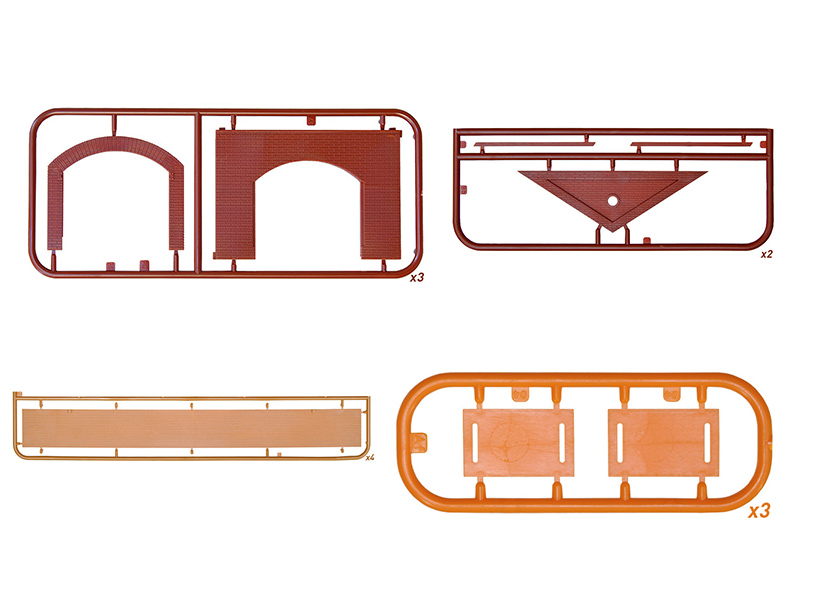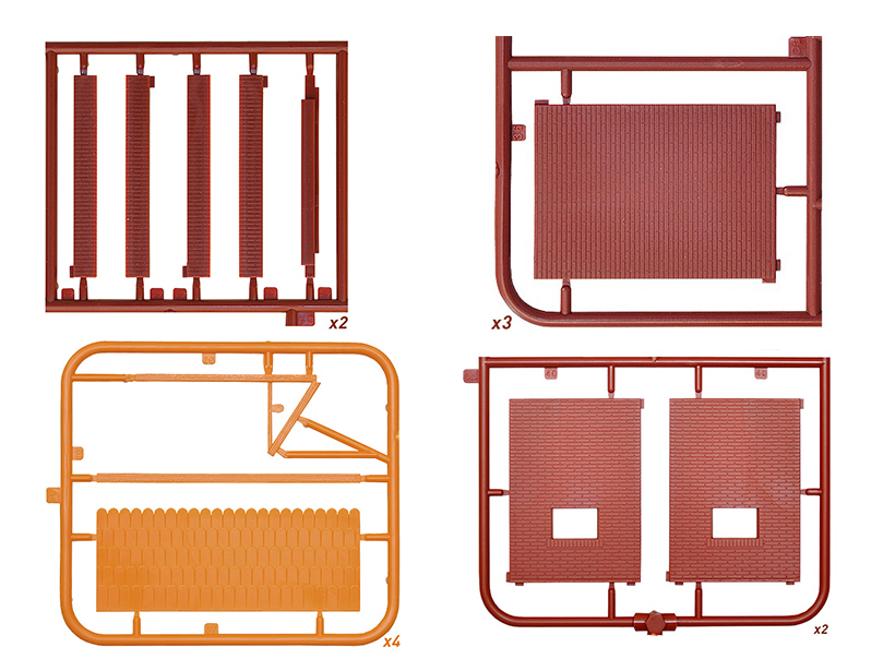 Набор пластиковых элементов для сборки пакгауза в масштабе 1:72.