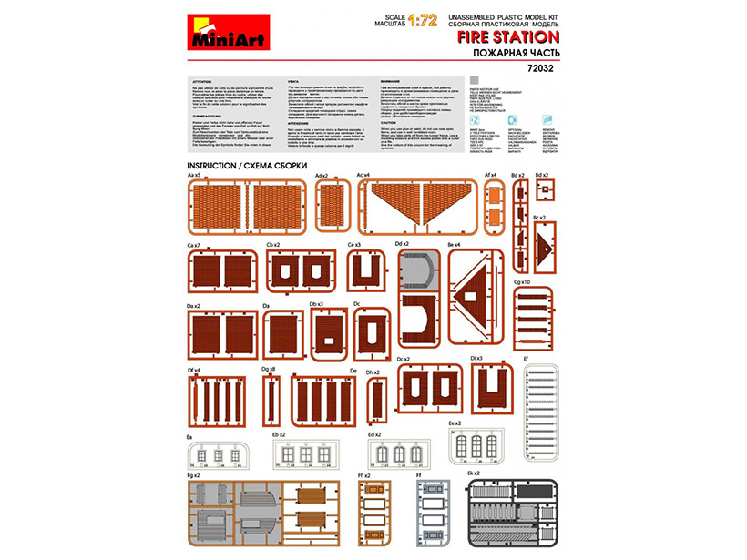 Набор пластиковых элементов для сборки здания пожарной части в масштабе 1:72.