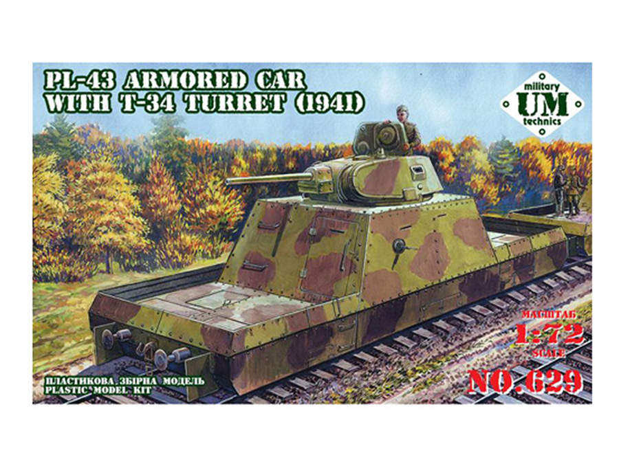 UM2-629 UMMT Бронеплощадка типа ПЛ-43 с башней танка Т-34 (1941г. выпуска) (1:72)