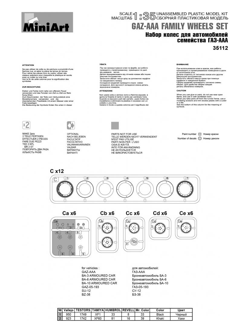 35112 MiniArt Набор колес для автомобилей семейства советских грузовиков ААА (1:35)