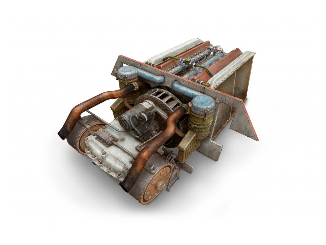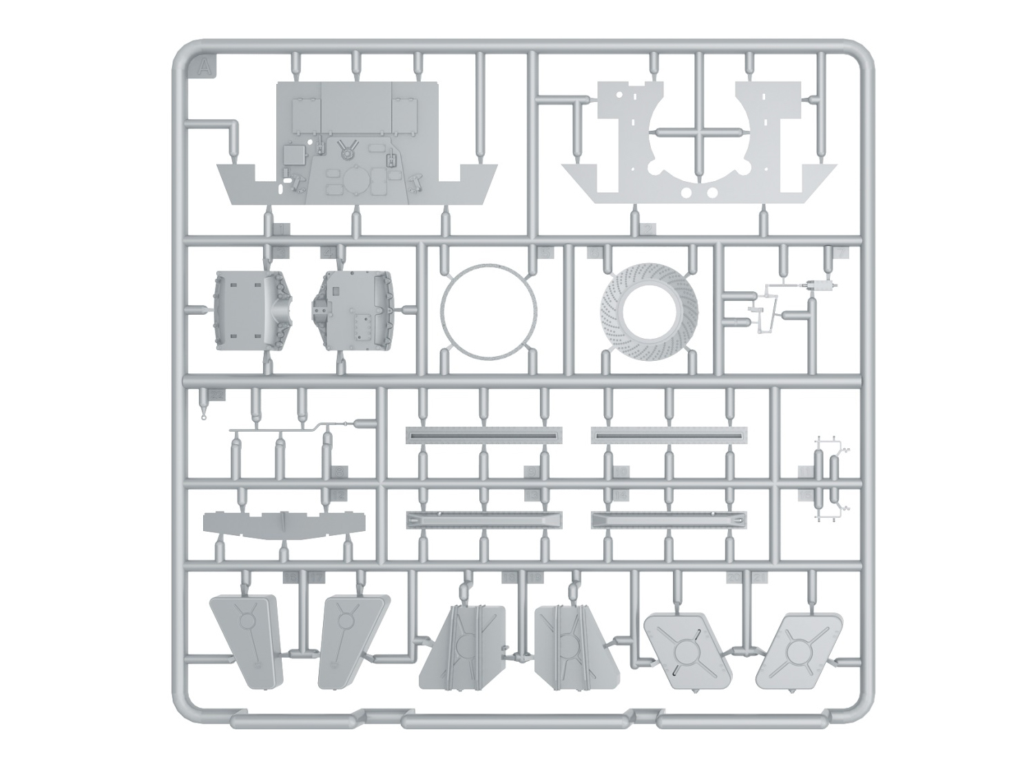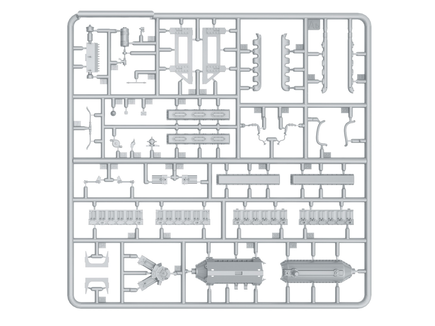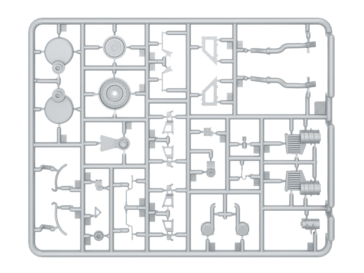 Набор пластиковых элементов для сборки модели двигателя V-2-34 с трансмиссией в масштабе 1:35.