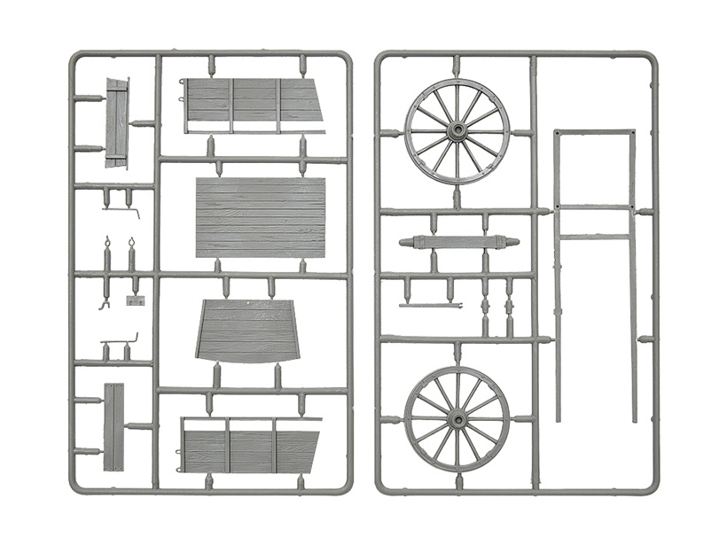 Набор пластиковых элементов для сборки сельской телеги в масштабе 1:35.