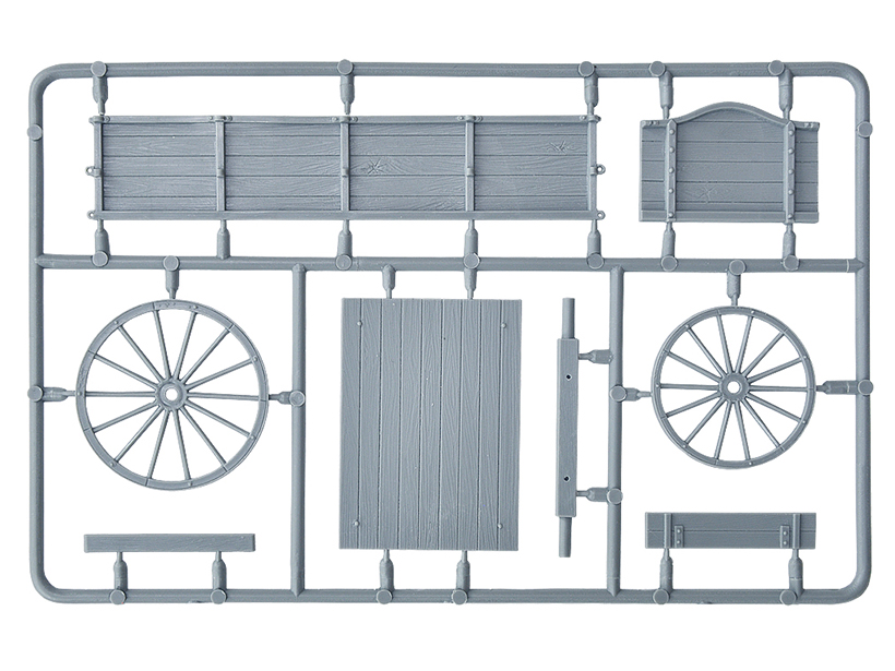 Набор пластиковых элементов для сборки европейской телеги в масштабе 1:35.