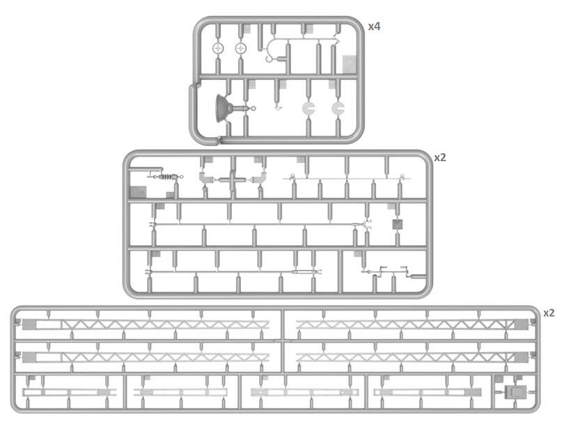 Набор пластиковых элементов для сборки железнодорожных электроопор с фонарями в масштабе 1:35.