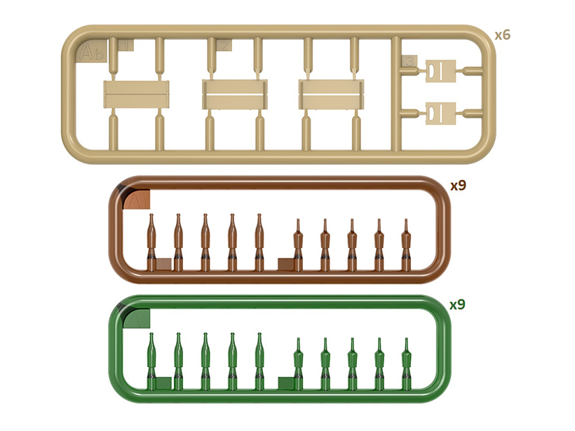 Набор пластиковых элементов для сборки деревянных ящиков с бутылками шампанского и коньяка в масштабе 1:35.