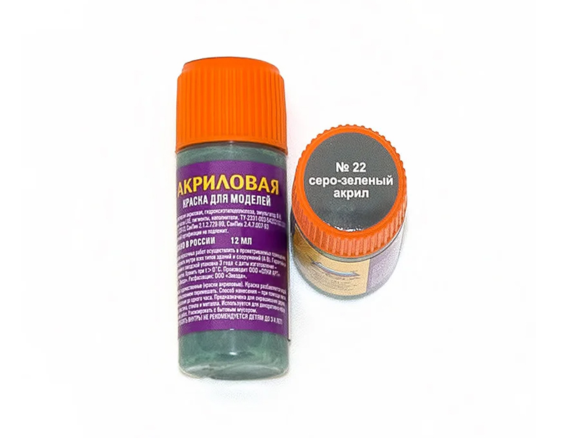 АКР 22 Звезда Краска акриловая. Краска серо-зеленая, 12 мл.