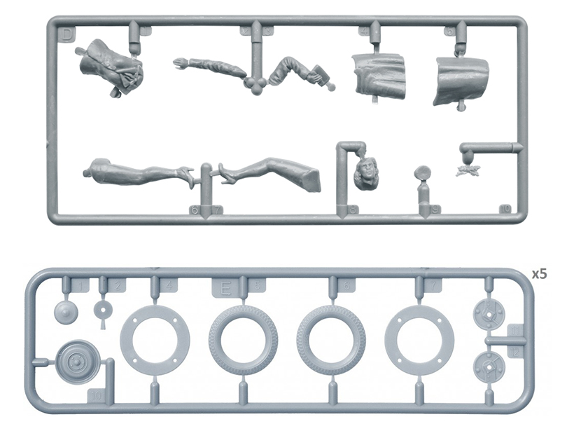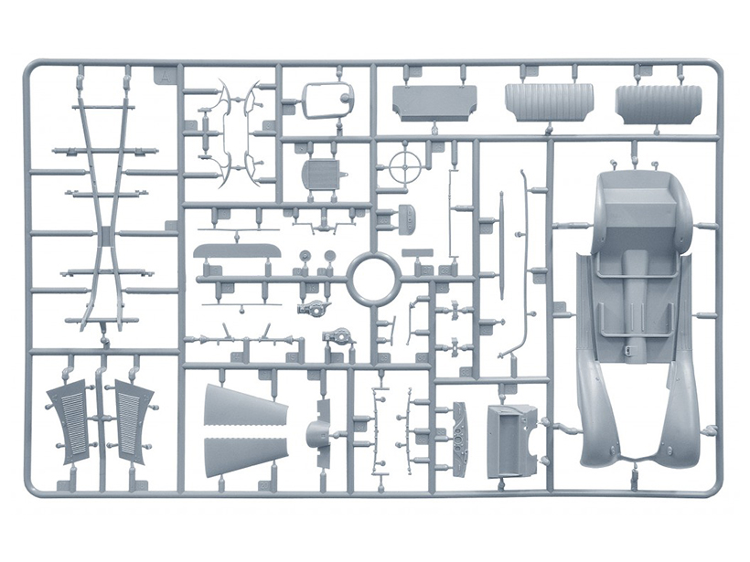 В комплекте реалистично выполненные элементы кузова, салона, ходовой части и мотора, элементы из прозрачного пластика для стекол кабины, салона и фар, фототравленные элементы и фигура женщины.
