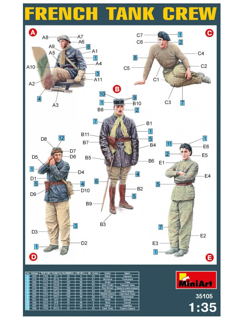 Набор пластиковых элементов для сборки фигур французского танкового экипажа в масштабе 1:35.