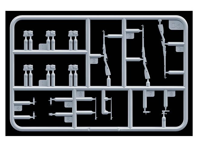 В комплекте 5 фигур пехотинцев в зимней форме одежды, вооружение (Автоматы ППШ, Винтовка Мосина, гранаты РГД и Ф-1, пистолет ТТ с кобурой), снаряжение (саперные лопатки,каски,бинокль, планшет, фляги, котелок, набор провизии, ложки, костер).