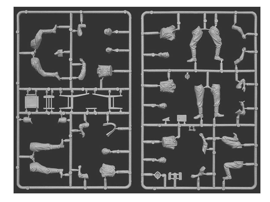 Набор пластиковых элементов для сборки фигур немецкой пехоты на отдыхе в масштабе 1:35.