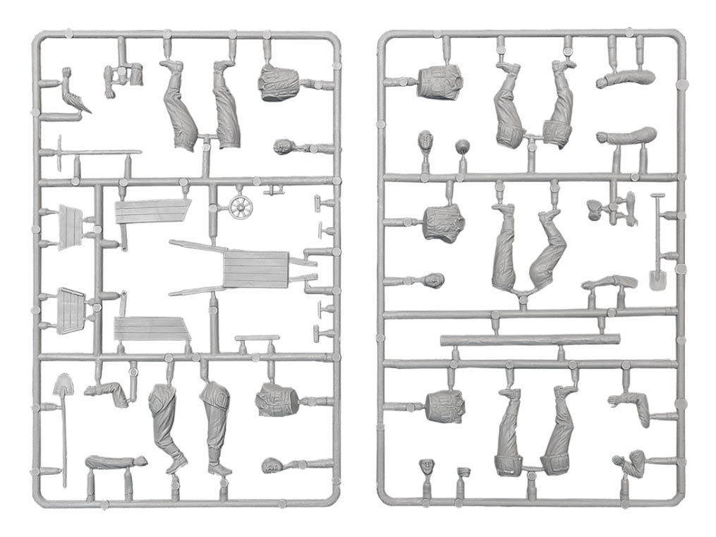Набор пластиковых элементов для сборки фигур немецкой пехоты за работой в масштабе 1:35.