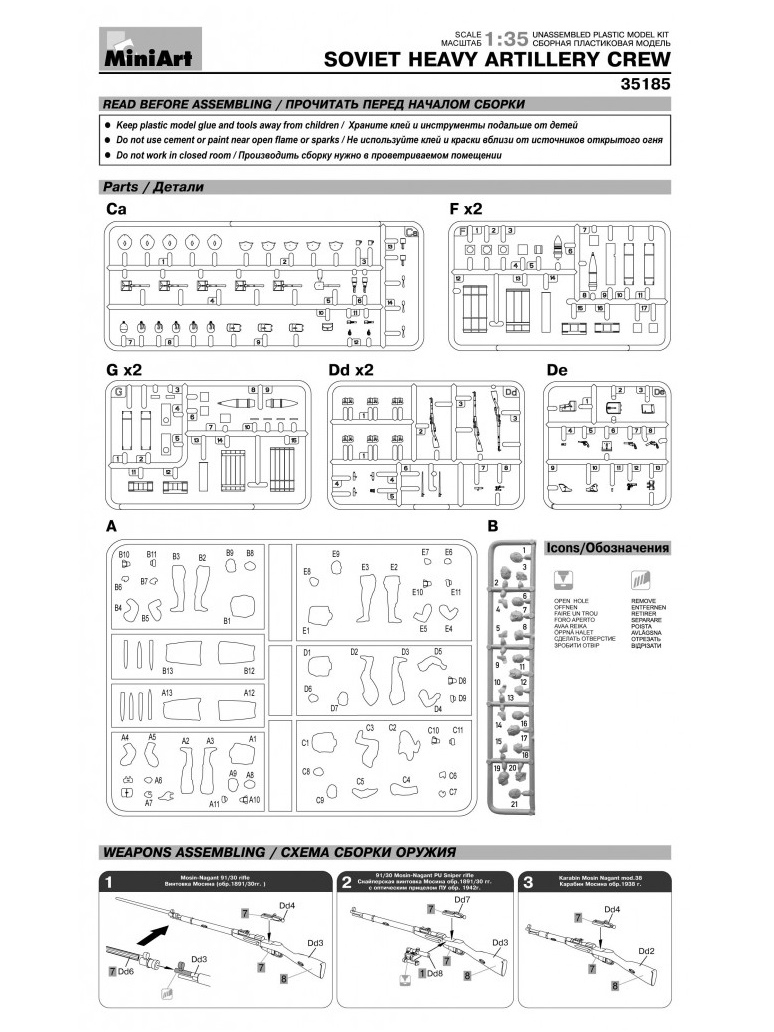 Набор пластиковых элементов для сборки фигур советских артиллеристов в масштабе 1:35.