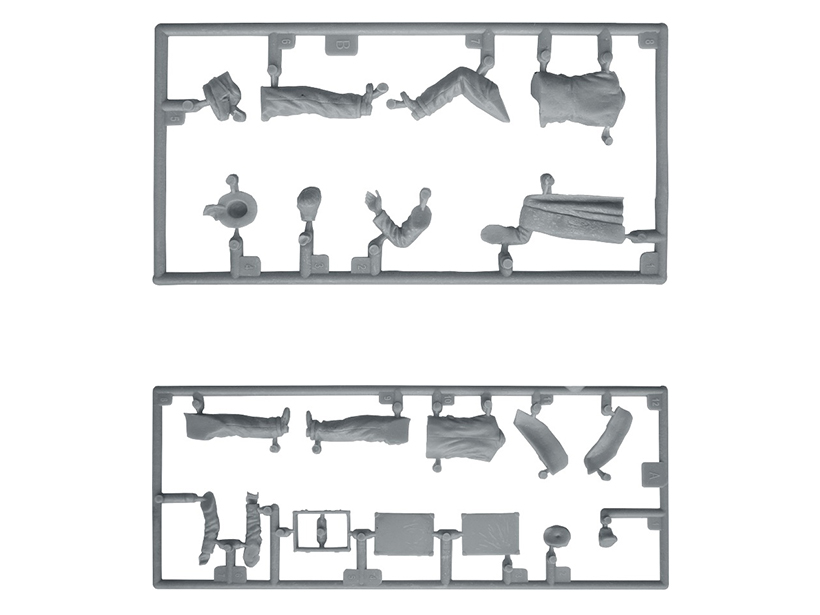 Набор пластиковых элементов для сборки европейского трамвая с экипажем и пассажирами в масштабе 1:35.