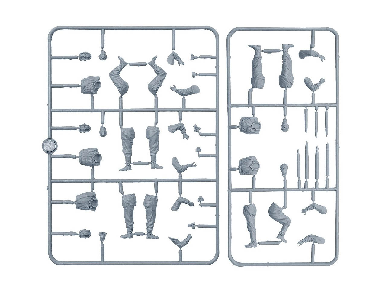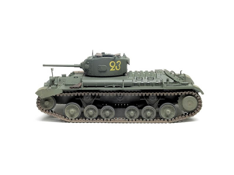 В комплекте модель танка Валентайн Mk.V со сборной башней, детально проработанной ходовой и вооружением, комплектом шанцевого инструмента, с фототравленными элементами брони, декалем и фигурами экипажа из 5 человек.