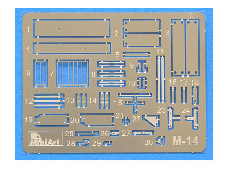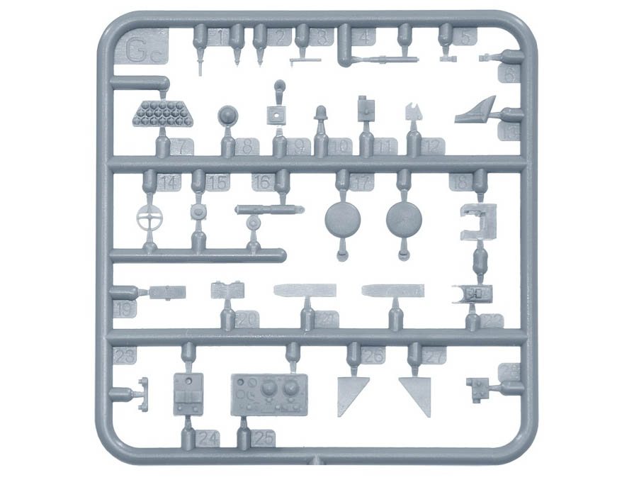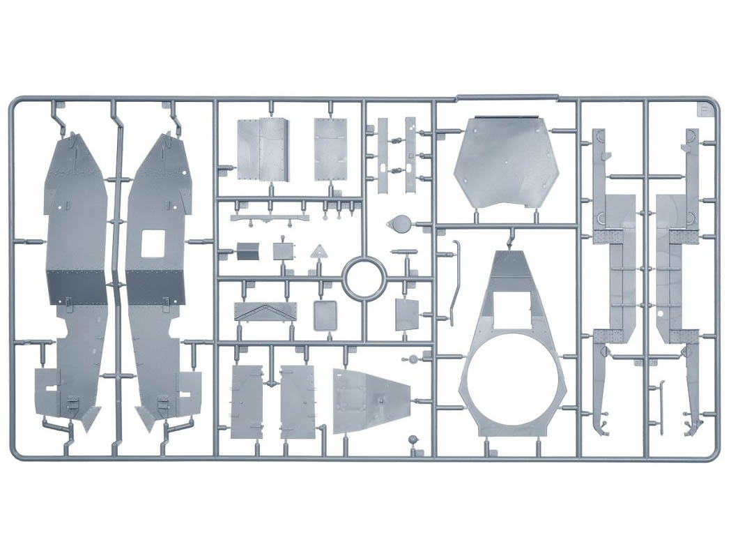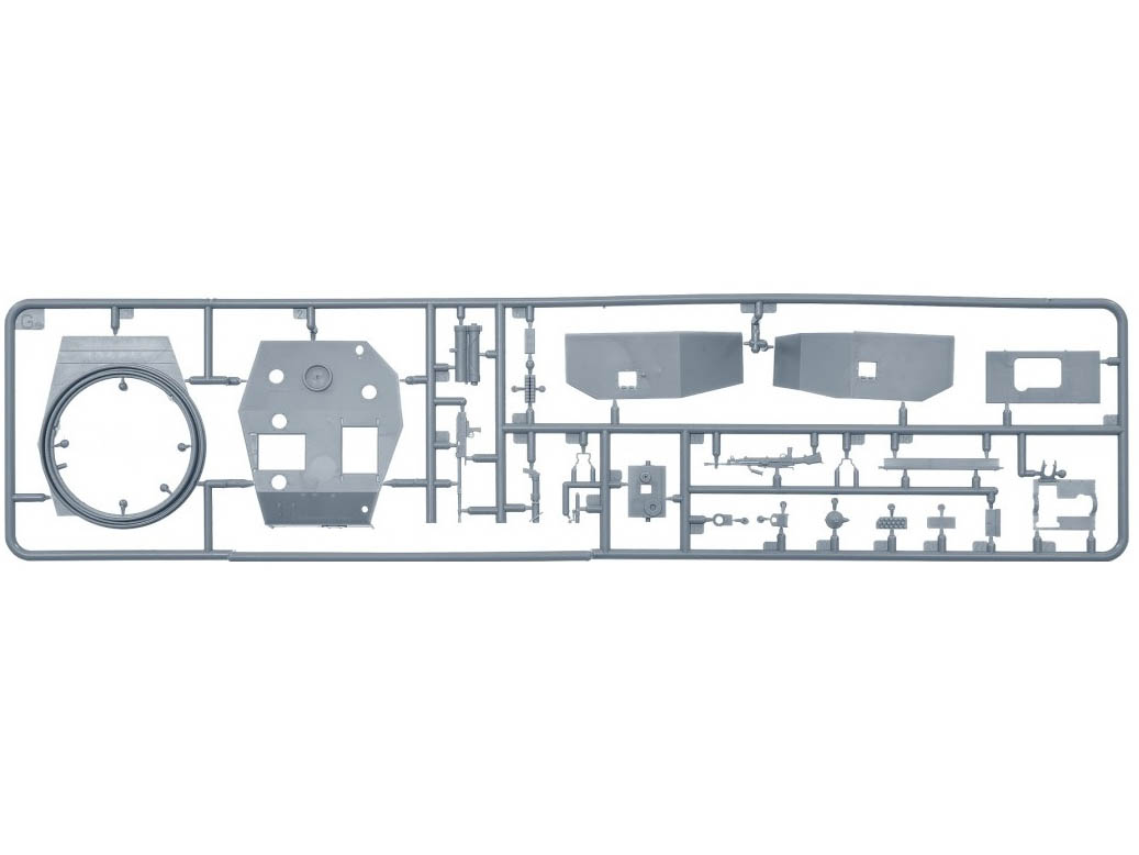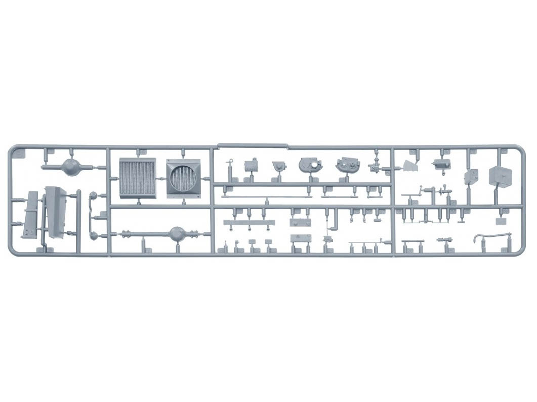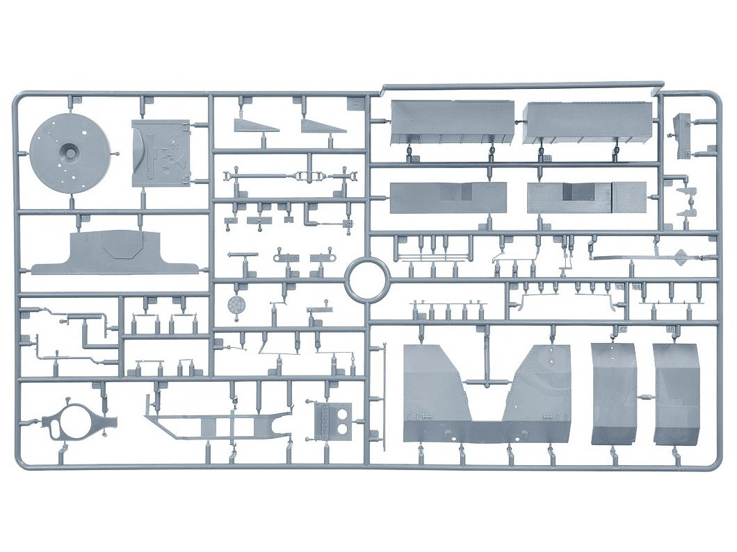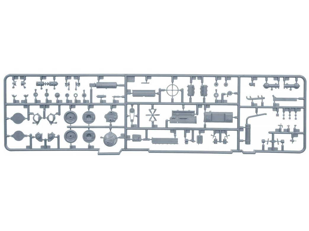 В комплекте полноцветная инструкция, реалистично выполненные элементы боевого отделения, ходовой части, детально проработанные узлы и агрегаты, элементы из прозрачного пластика для боевых перископов, фототравленные элементы, декали.
