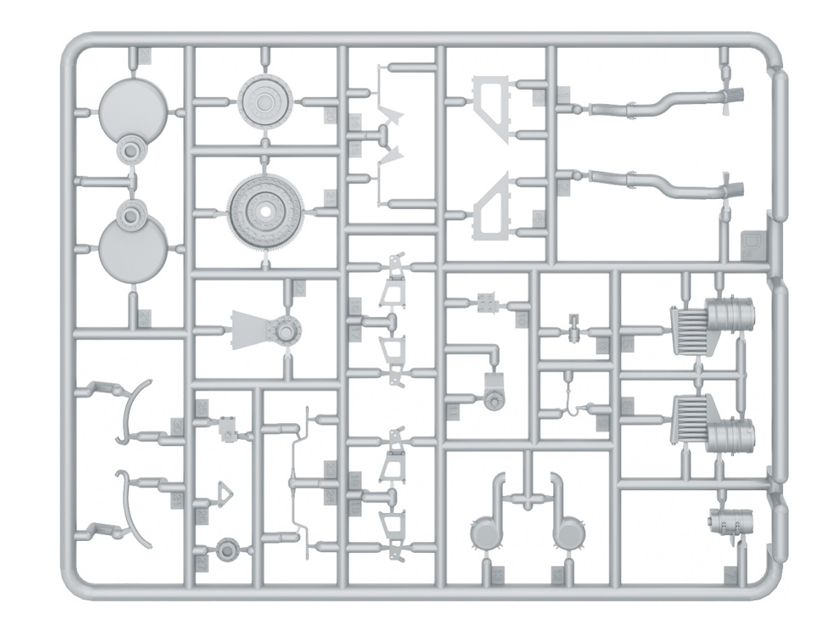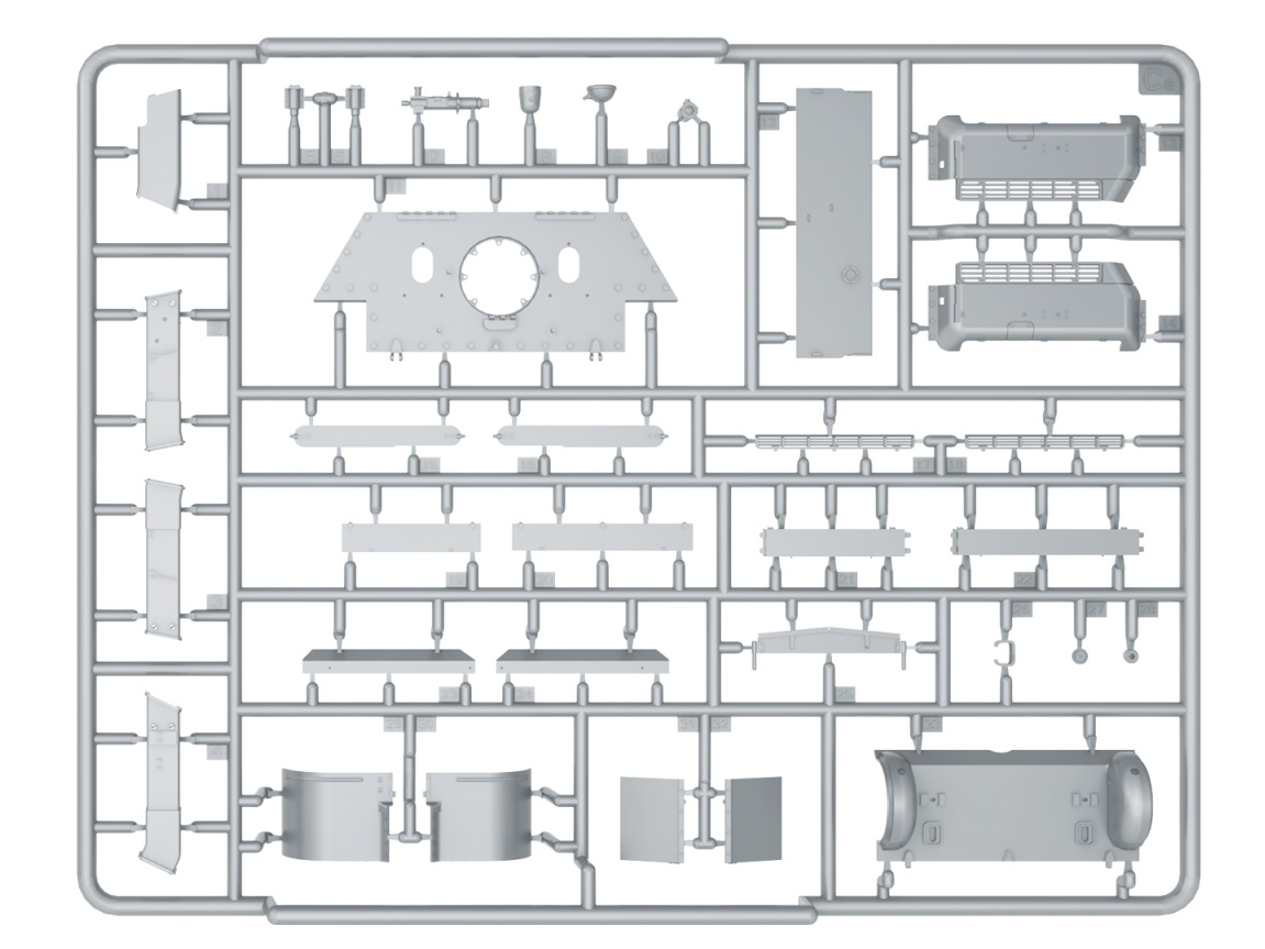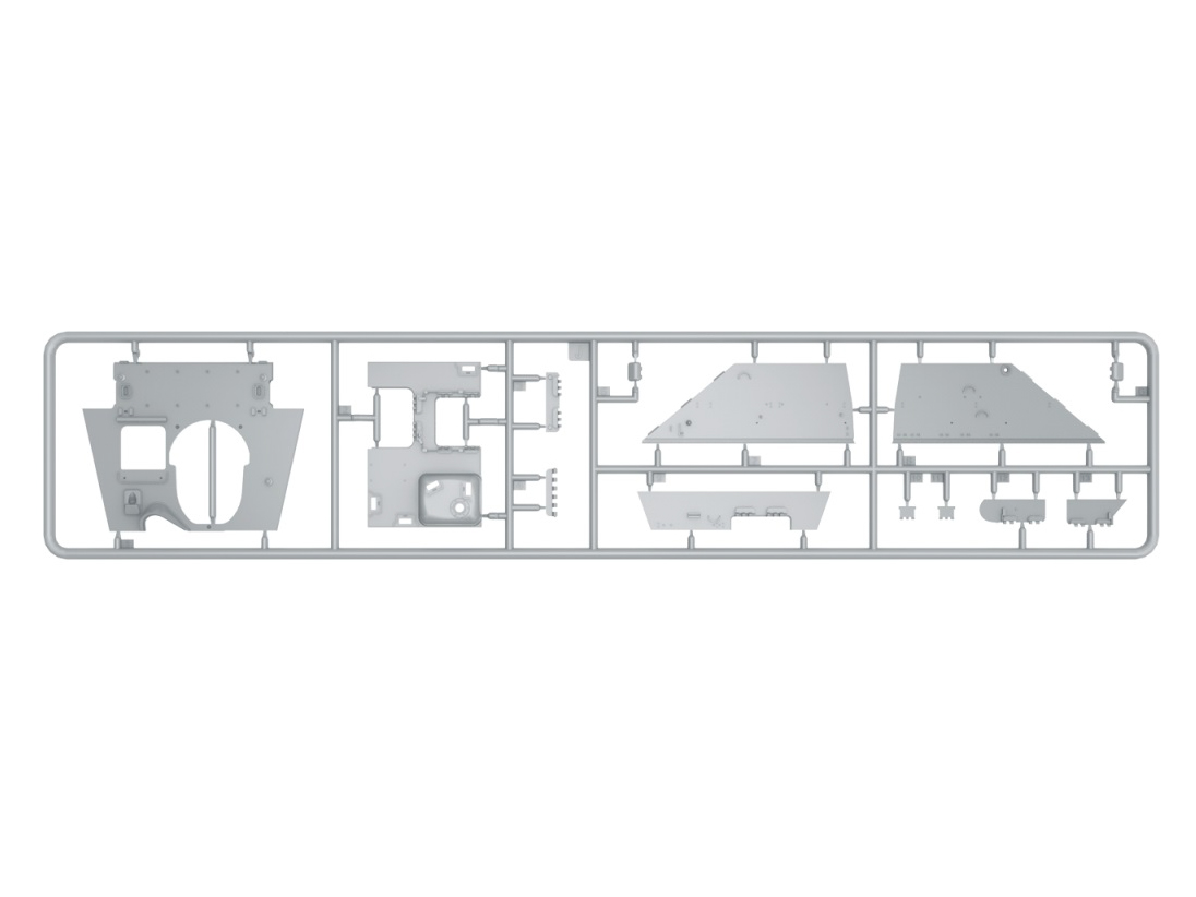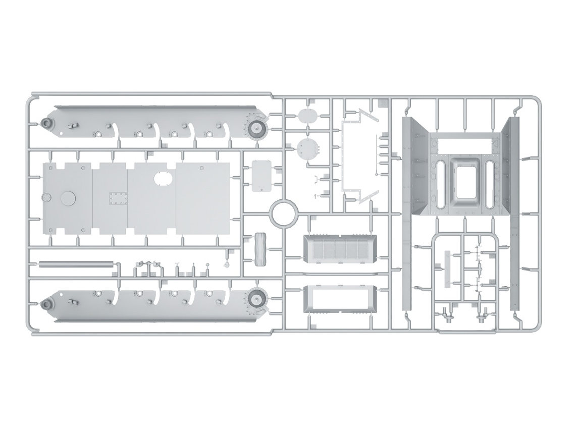 В комплекте полноцветная инструкция, высокодетальная модель СУ-85 с подробно проработанной ходовой, боевым отделением, моторным отсеком и трансмиссией, подвижными гусенечными цепями, с элементами из прозрачного пластика для боевых перископов, с фототравленными элементами брони, декаль.