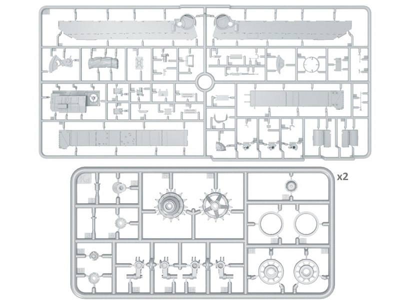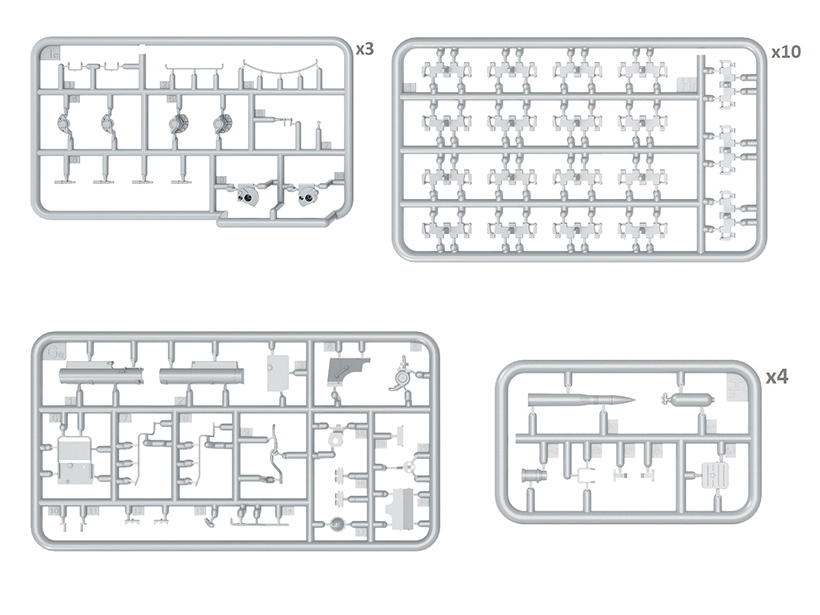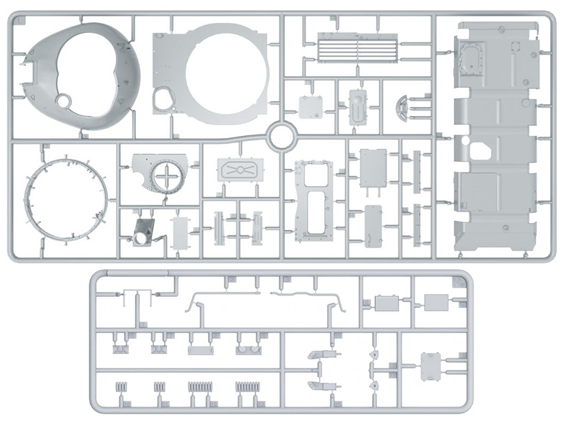 В комплекте высокодетальная модель танка 54 В с подробно проработанной ходовой, боевым отделением, моторным отсеком и вооружением, подвижными гусенечными цепями и рабочими торсионами, вращающимся полом боевого отделения, с 2-мя типами опорных катков, с элементами из прозрачного пластика, с фототравленными элементами брони, декаль для 4 вариантов, полный комплект боеприпасов.