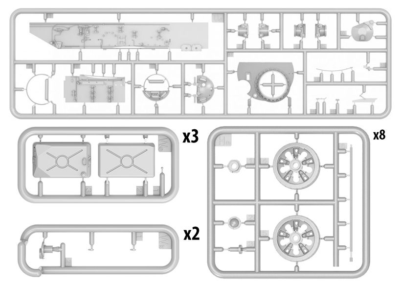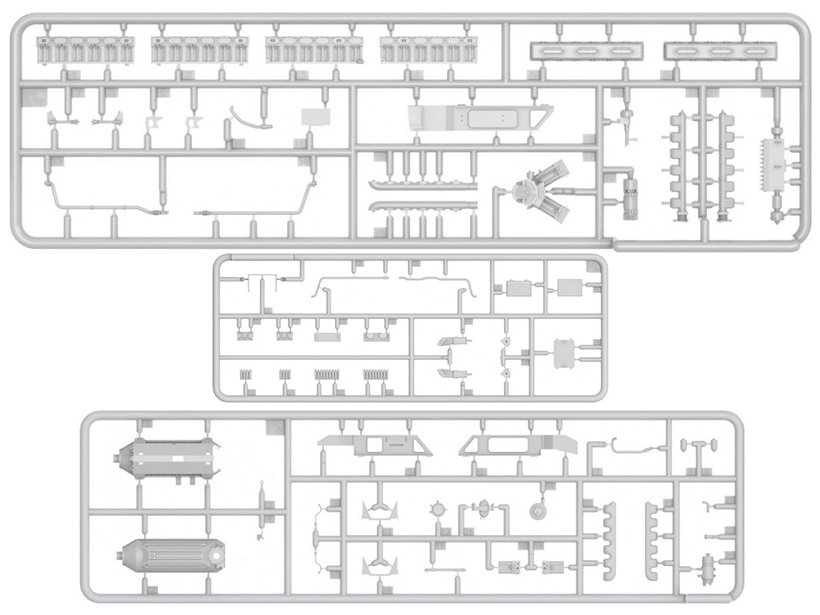 Набор пластиковых элементов для сборки модели советской среднего танка серии 55 А раннего выпуска 1965 с интерьером в масштабе 1:35.