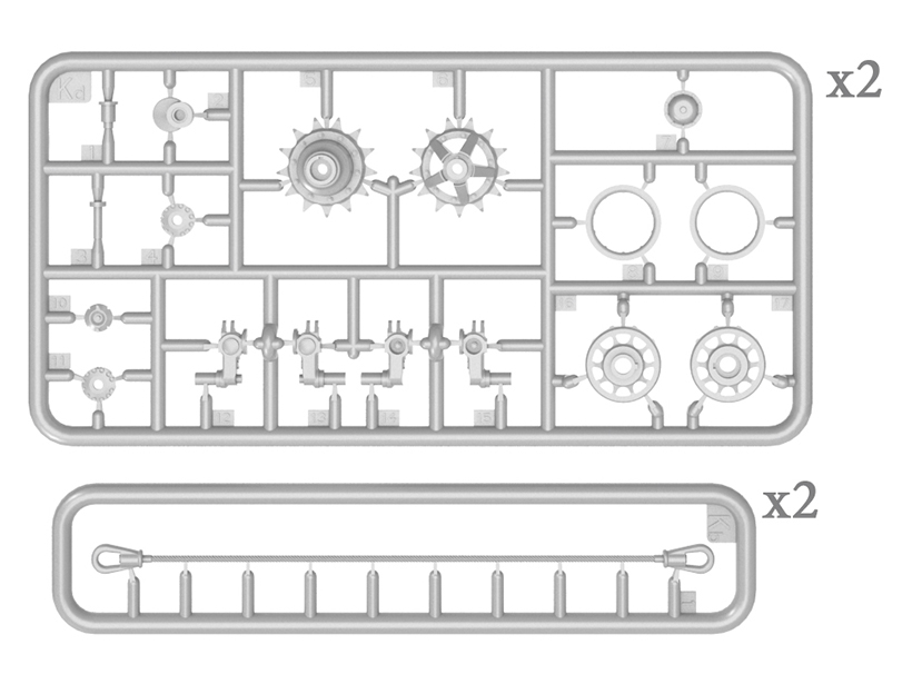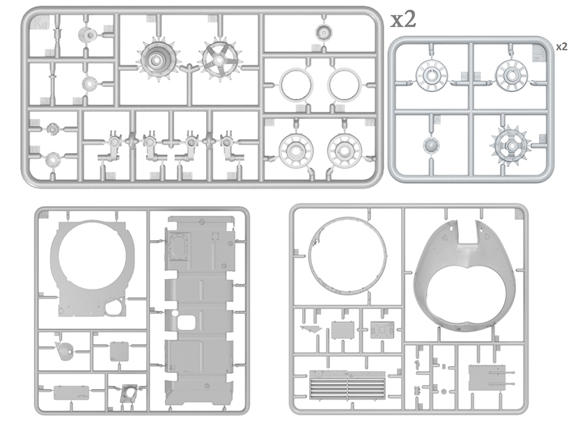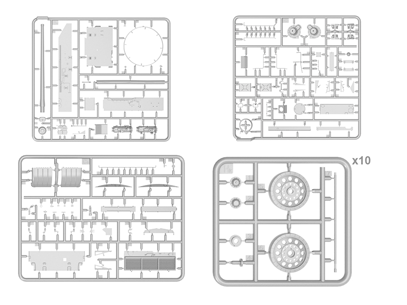 В комплекте высокодетальная модель танка 54 А с подробно проработанной ходовой, подвижными гусенечными цепями и рабочими торсионами, с элементами из прозрачного пластика, с фототравленными элементами брони, декаль для 7 вариантов.