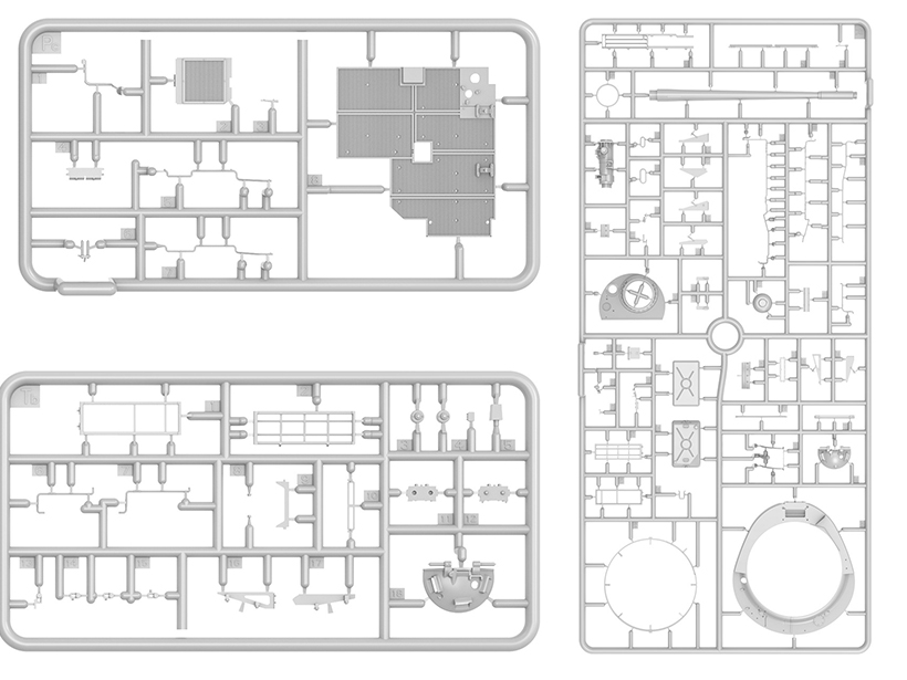 Набор пластиковых элементов для сборки модели танка Тиран 4 Sh раннего типа с интерьером в масштабе 1:35.