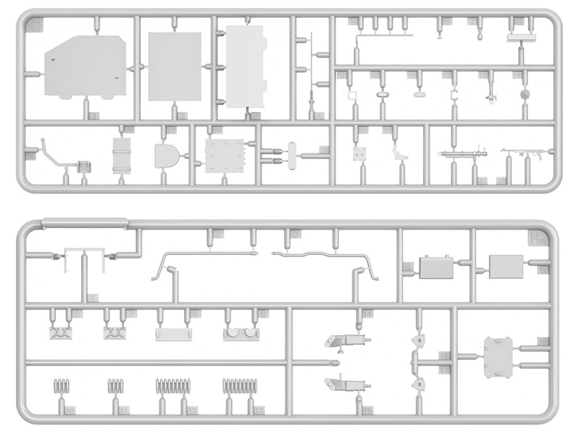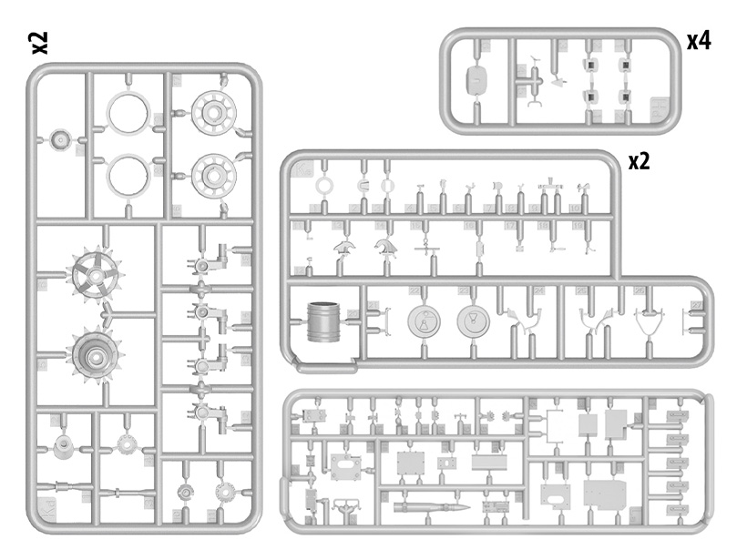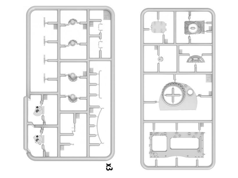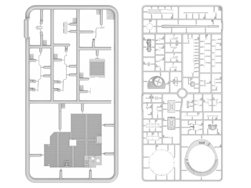 Набор пластиковых элементов для сборки модели танка Тиран 4 позднего типа с интерьером в масштабе 1:35.