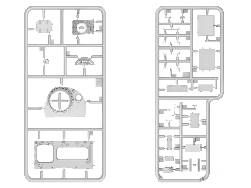Набор пластиковых элементов для сборки модели танка Тиран 4 позднего типа с интерьером в масштабе 1:35.