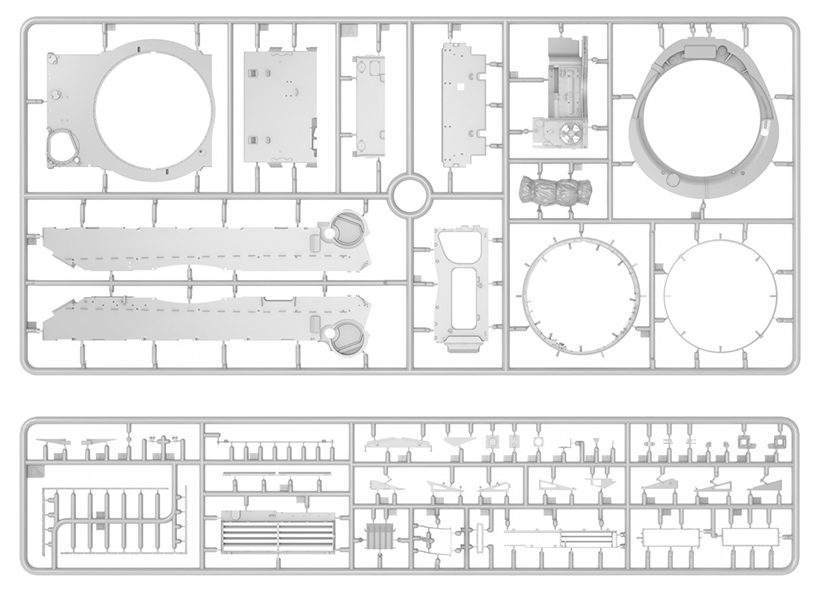 Набор пластиковых элементов для сборки модели советской среднего танка серии 55 ранних выпусков в масштабе 1:35.