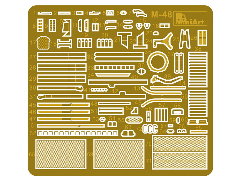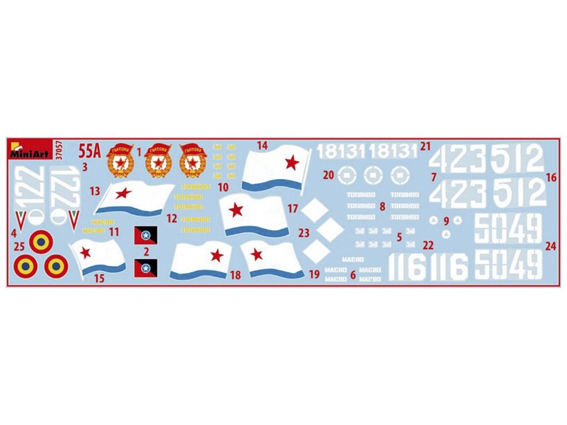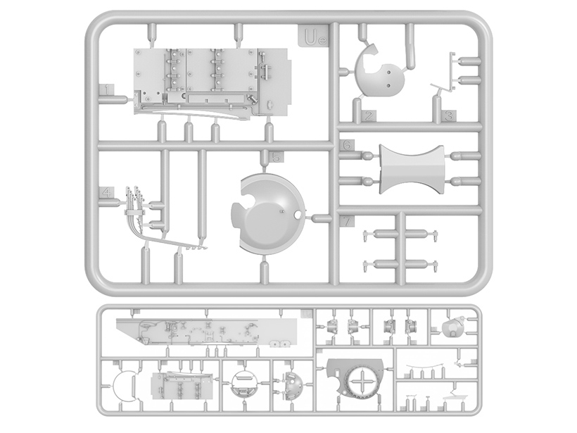 В комплекте высокодетальная модель танка серии 55 с подробно проработанной ходовой, подвижными гусенечными цепями и рабочими торсионами, с элементами из прозрачного пластика, с фототравленными элементами брони, 9 вариантов окраски и маркировки.