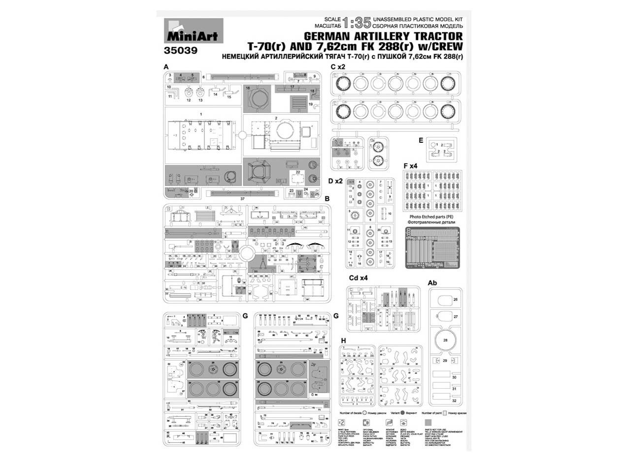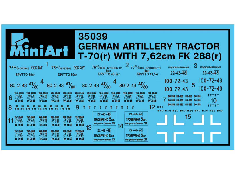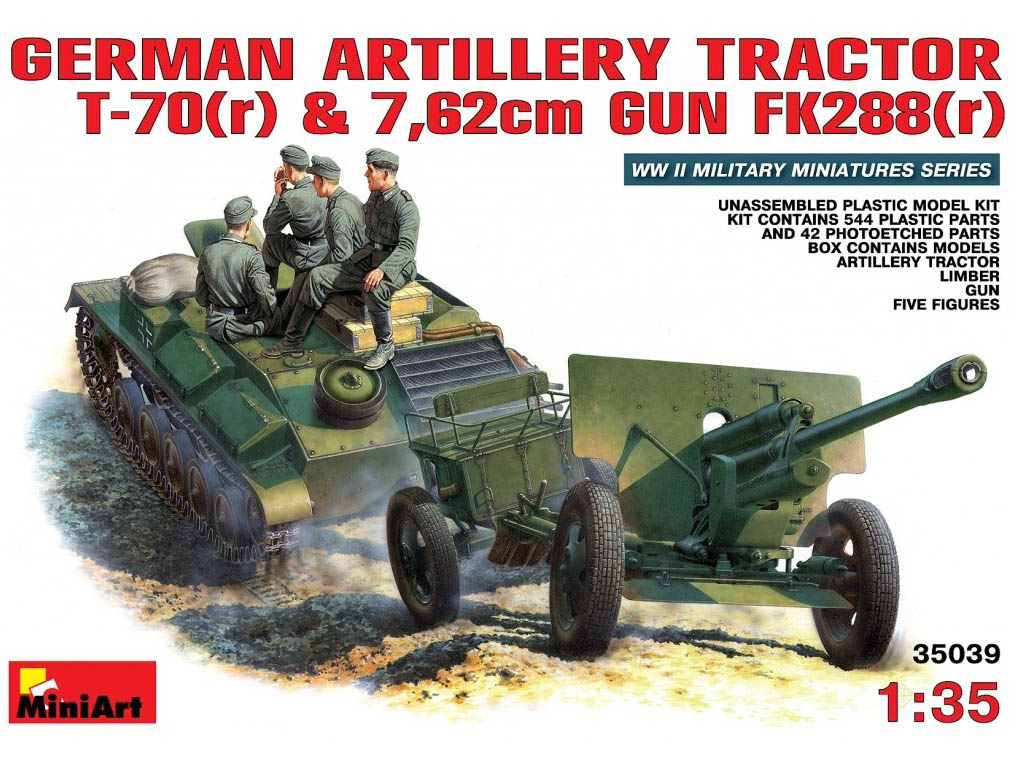 35039 MiniArt Немецкий артиллерийский тягач T-70(r) с пушкой 7,62см FK 288(r) и экипажем (1:35)