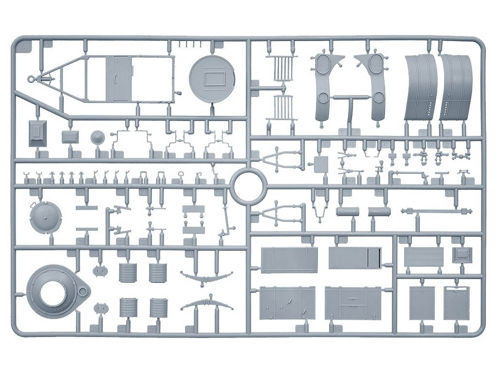 Набор пластиковых элементов для сборки модели советской полевой кухни КП-42 в масштабе 1:35.