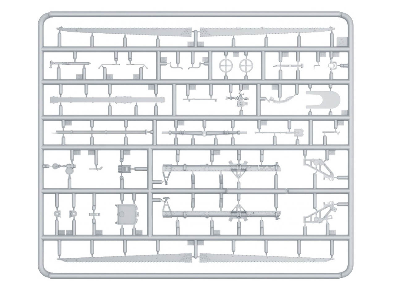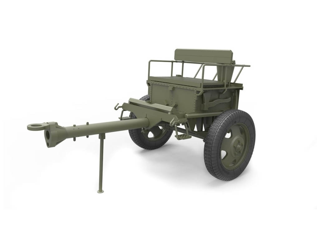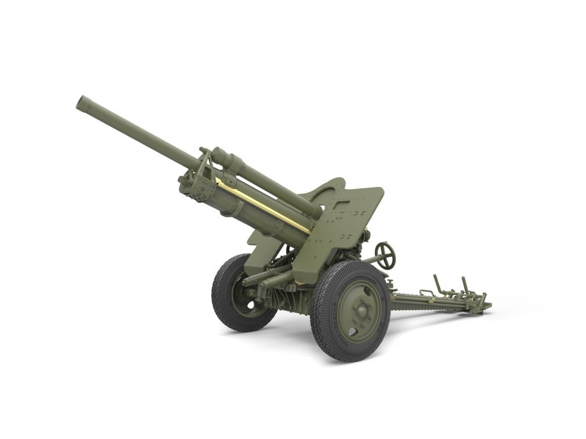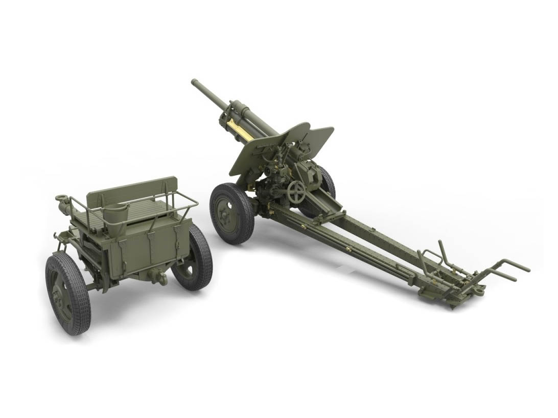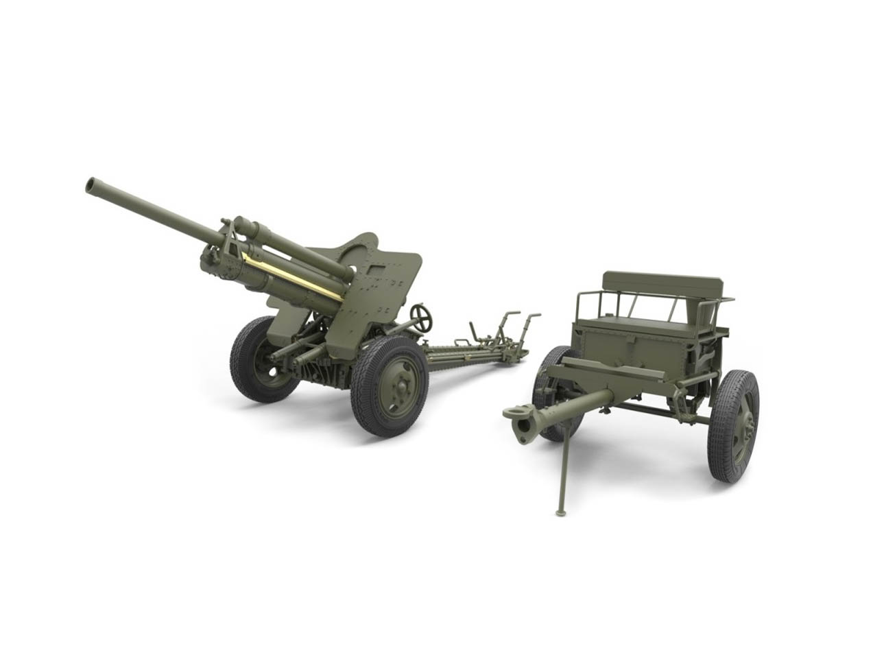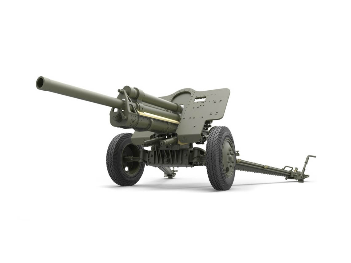 В комплекте детально проработанная модель пушки с элементами управления, артиллерийский передок, ящики со снарядами, фототравленные элементы орудия, яркий декаль и 5 фигур артиллеристов.