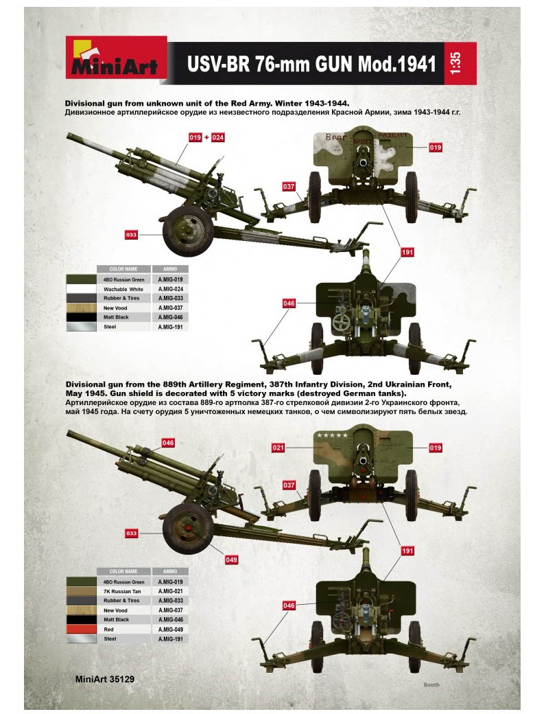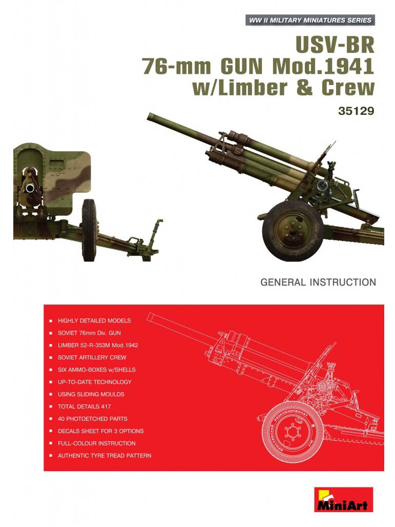 35129 MiniArt Советская пушка УСВ-БР 76-мм обр. 1941 с артиллерийским передком и расчетом (1:35)
