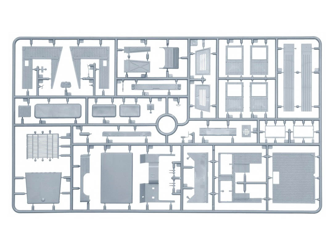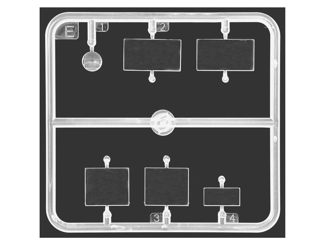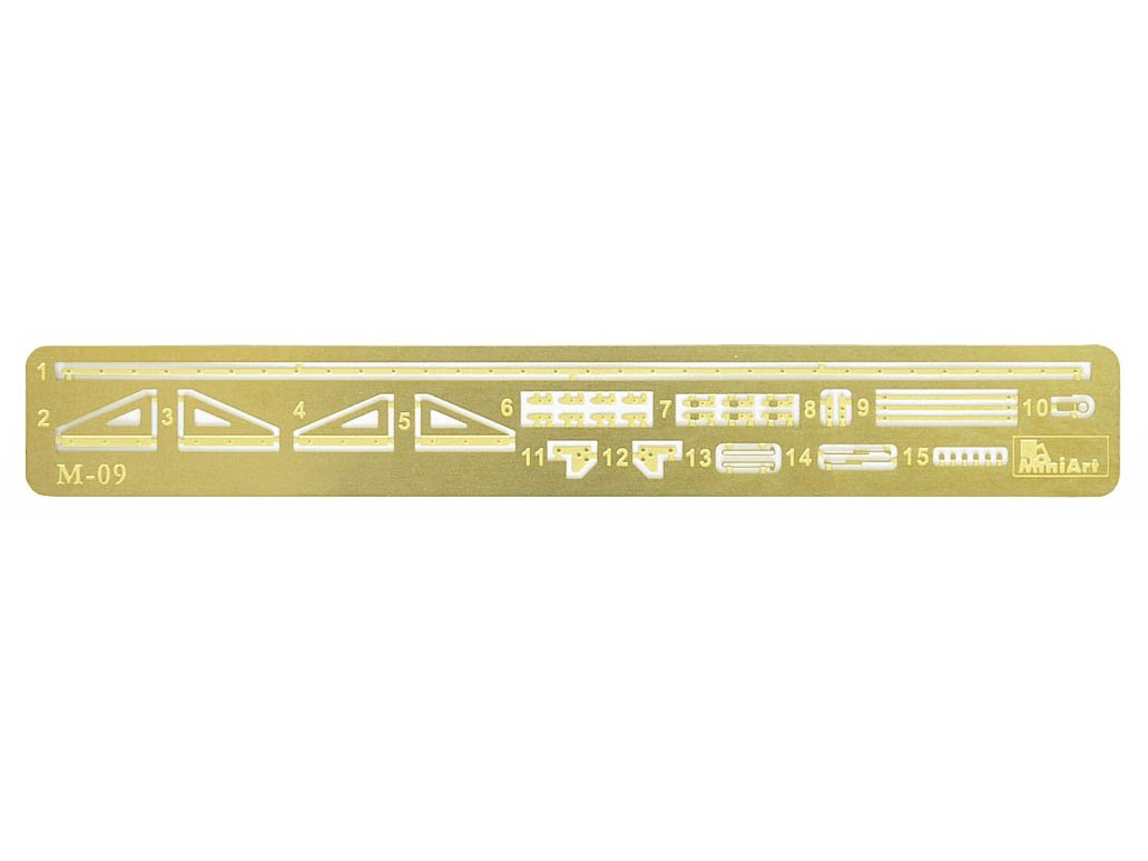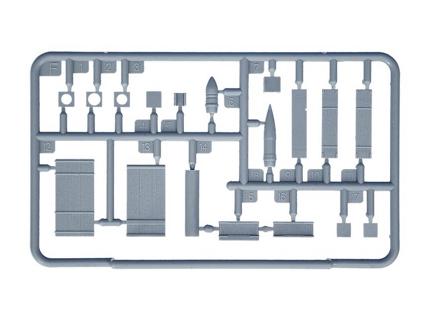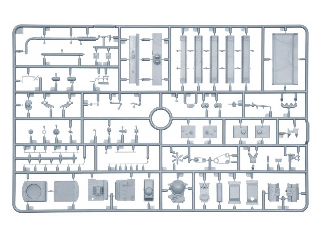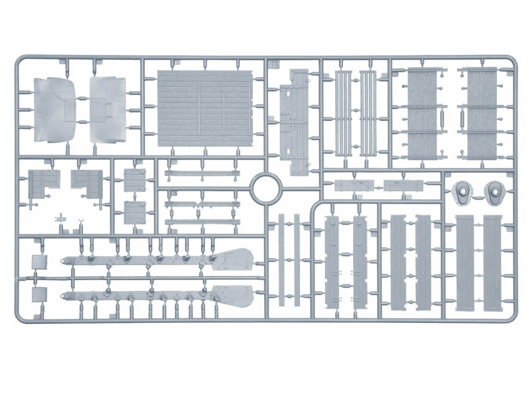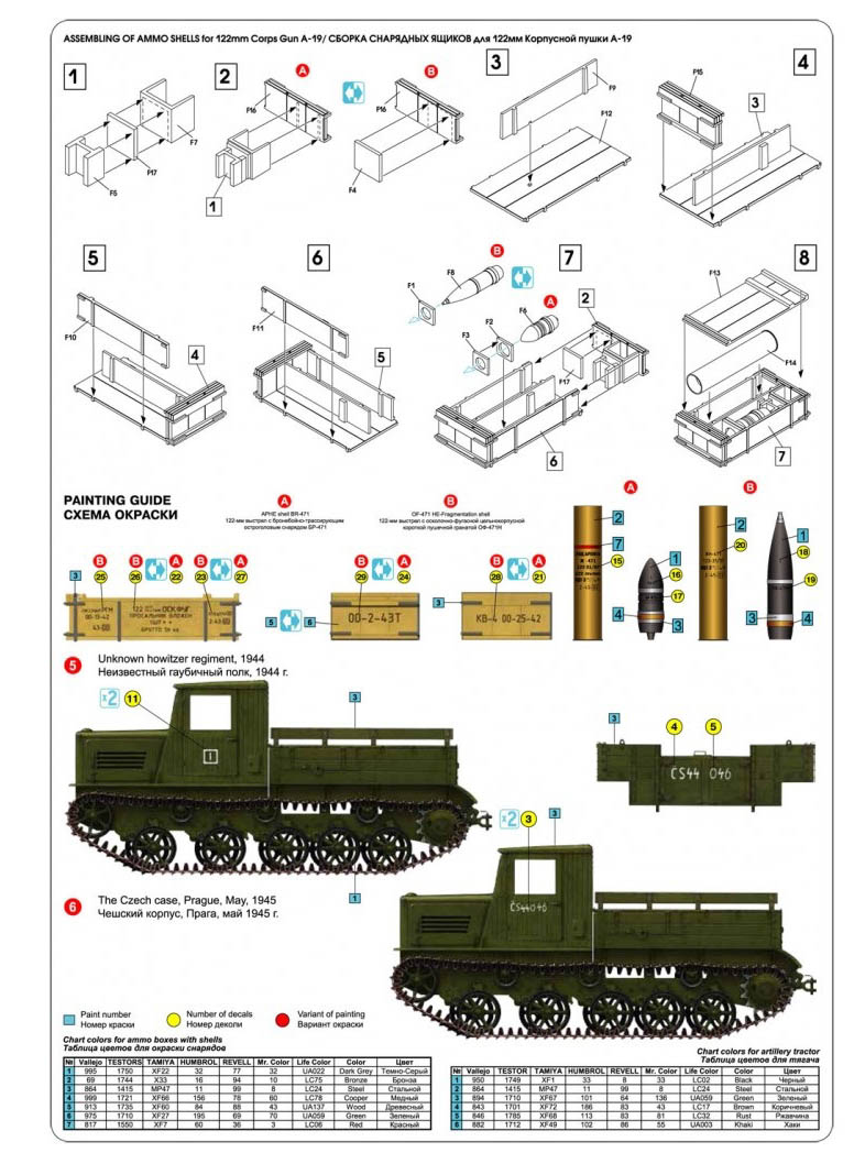 В комплекте элементы из прозрачного пластика для стекол кабины и фар, наборные траки, фототравленные элементы,ящики со снарядами различных калибров, декаль.