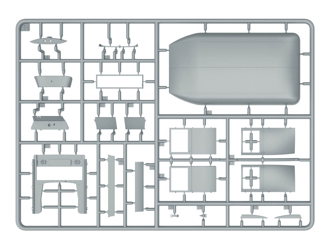 В комплекте полноцветная инструкция, реалистично выполненные элементы кузова, салона, ходовой части и мотора, детально проработанные узлы и агрегаты, элементы из прозрачного пластика для стекол кабины и фар, фототравленные элементы кузова, декаль, схемы окраски на 10 вариантов.
